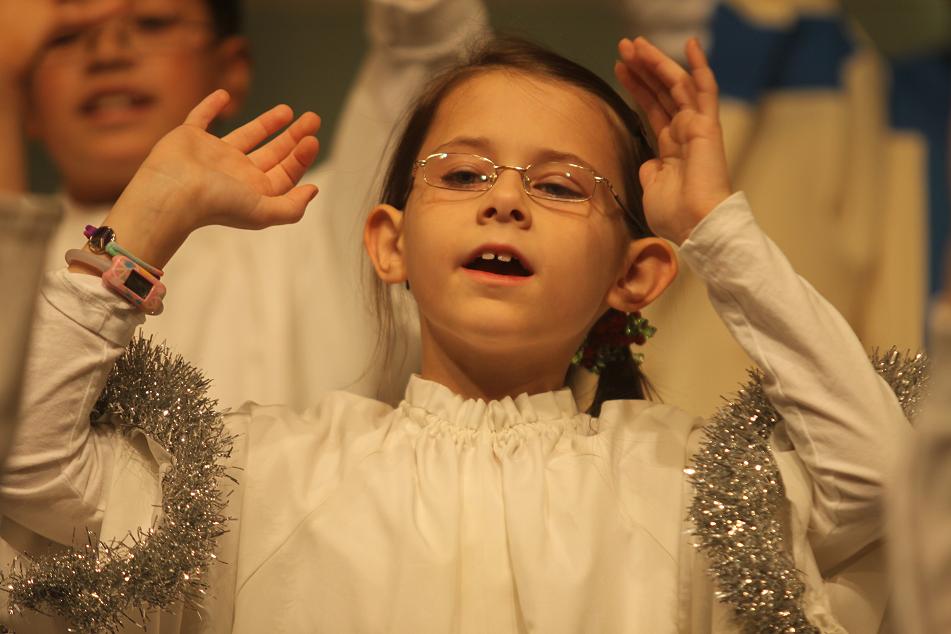 Sunday night was McKenzie and Matt's Christmas program at church. McKenzie got pressed into extra duty at the last minute. One of the girls who had a big part in the play got sick Sunday and wasn't able to be there. We found out Sunday morning and Andy asked McKenzie to fill in for her and learn the girl's lines. McKenzie practiced her lines Sunday afternoon and did a great job Sunday night!